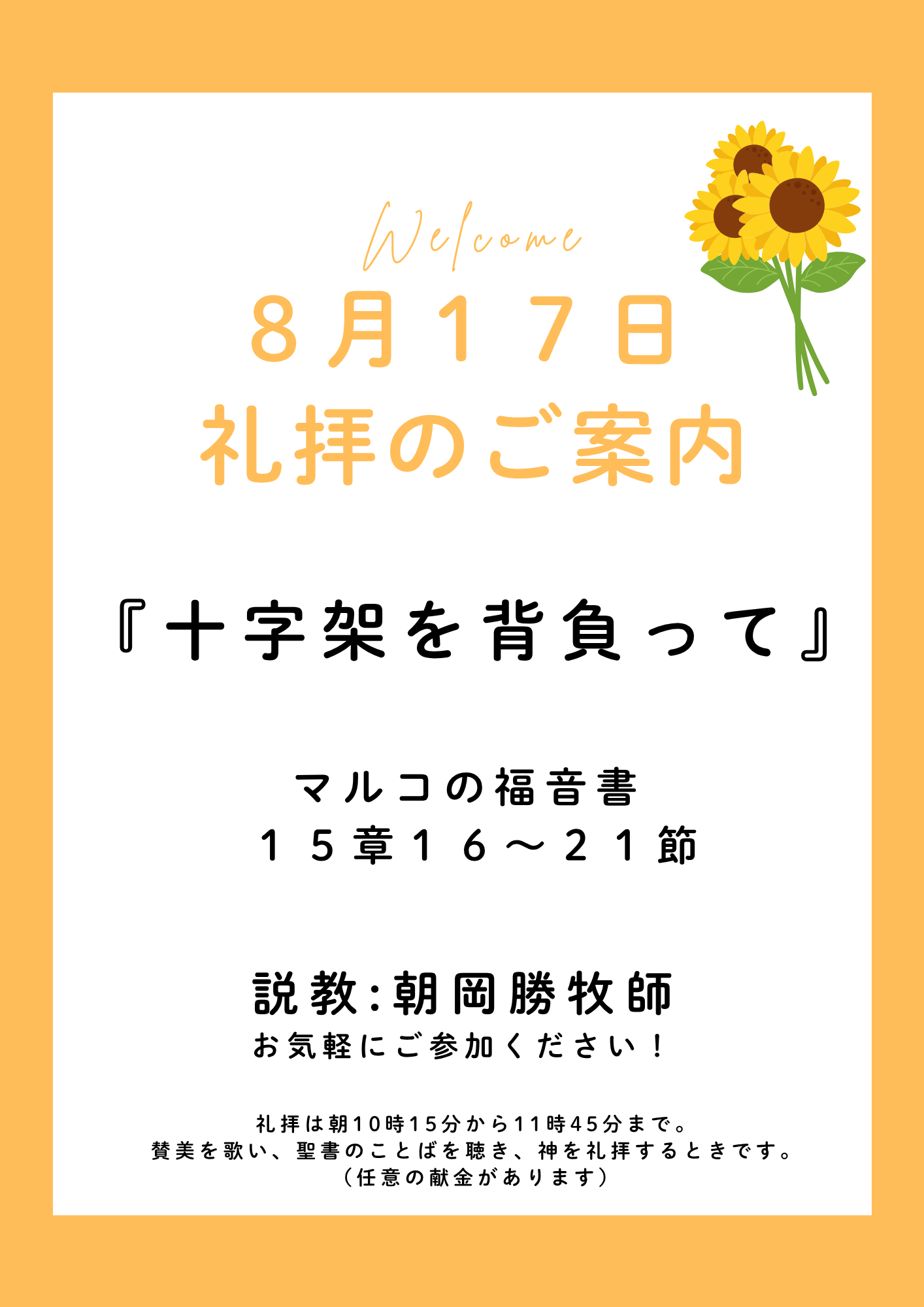 2025年8月17日 主日礼拝「十字架を背負って」マルコの福音書15章16~21節