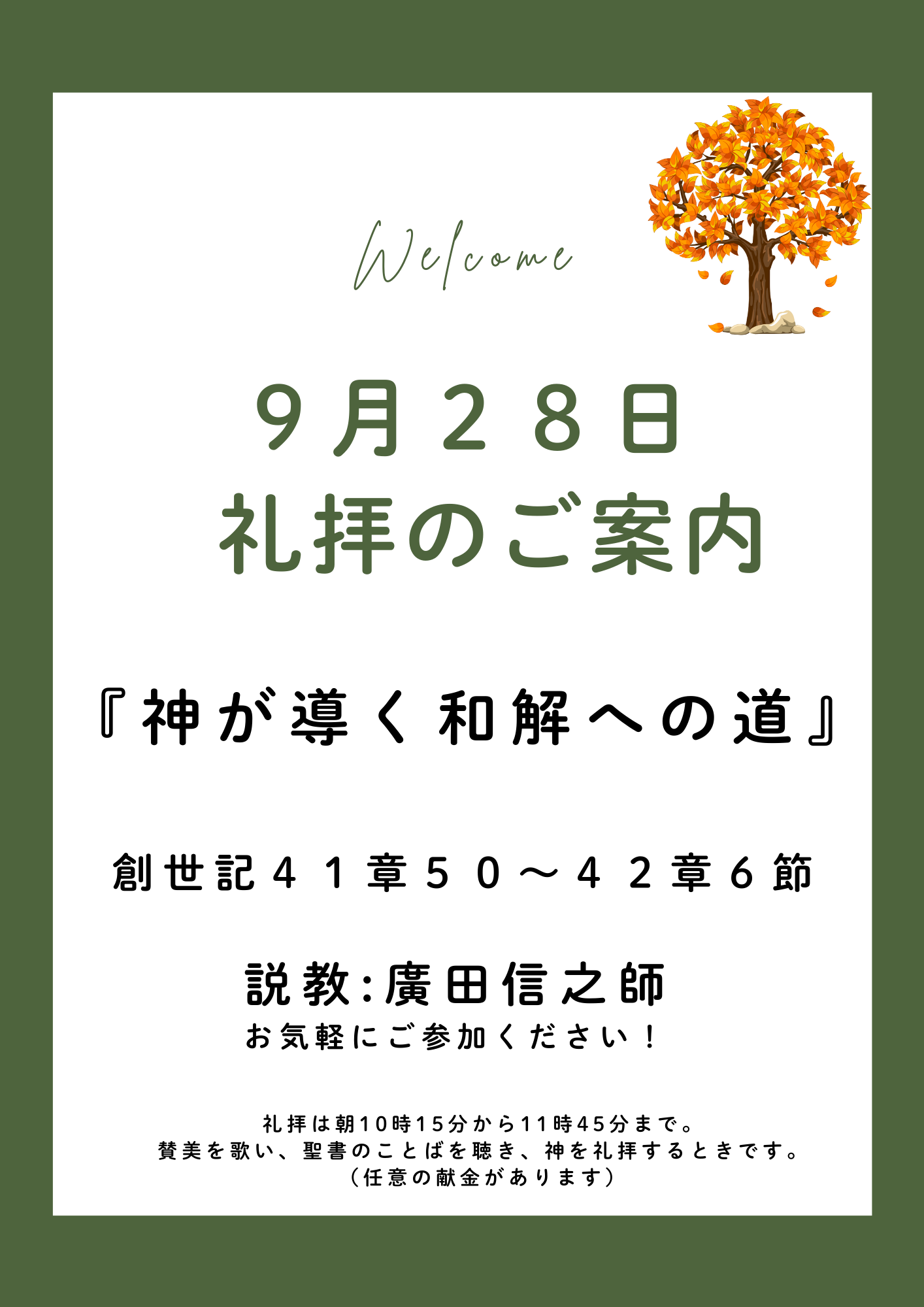 ホーム お知らせ 2025年9月28日 主日礼拝のご案内