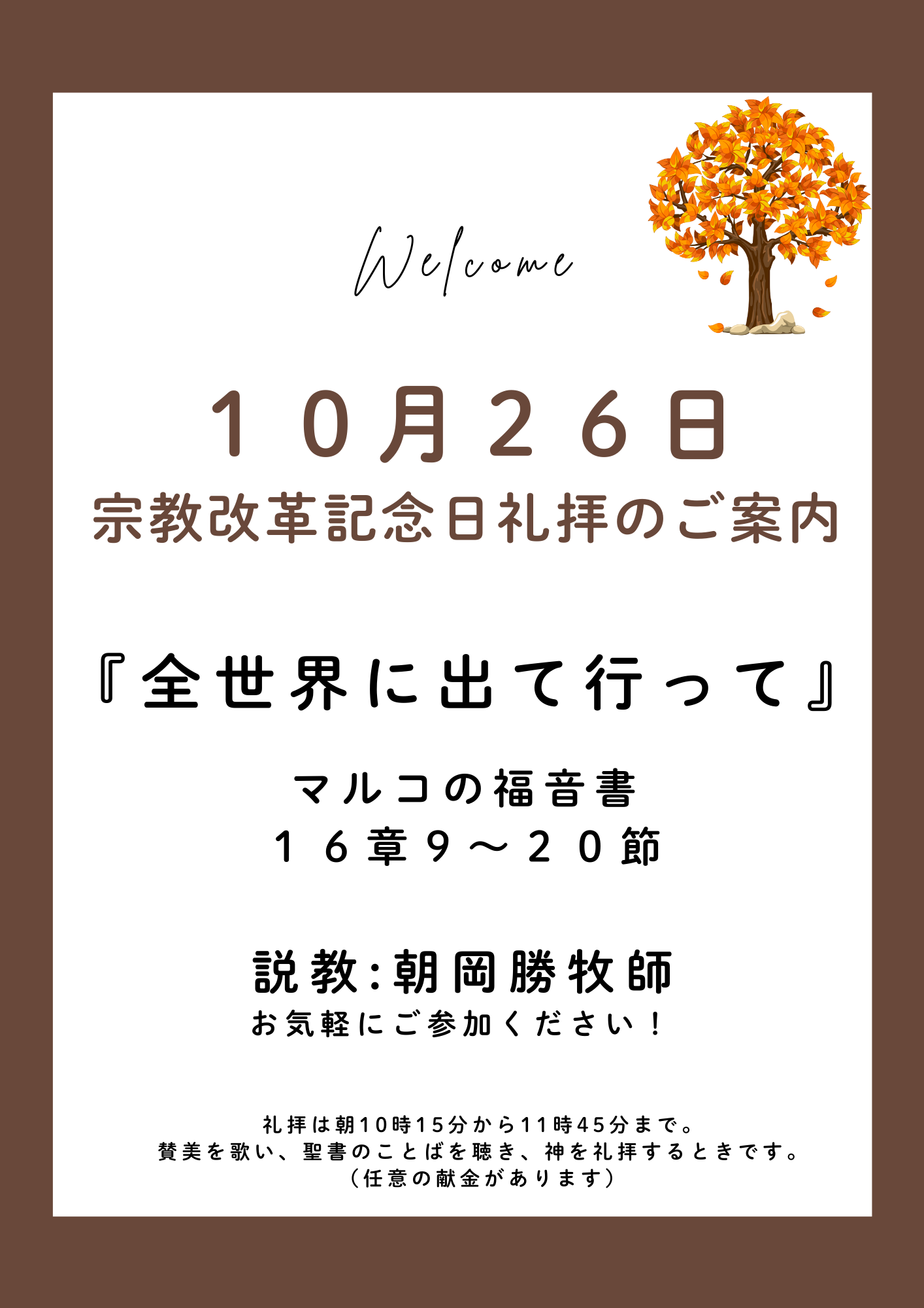 2025年10月26日 宗教改革記念礼拝のご案内
