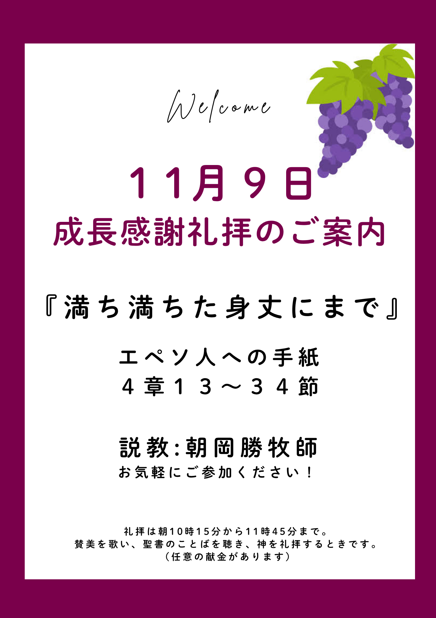 2025年11月9日 成長感謝礼拝「満ち満ちた身丈にまで」エペソ人への手紙4章13節