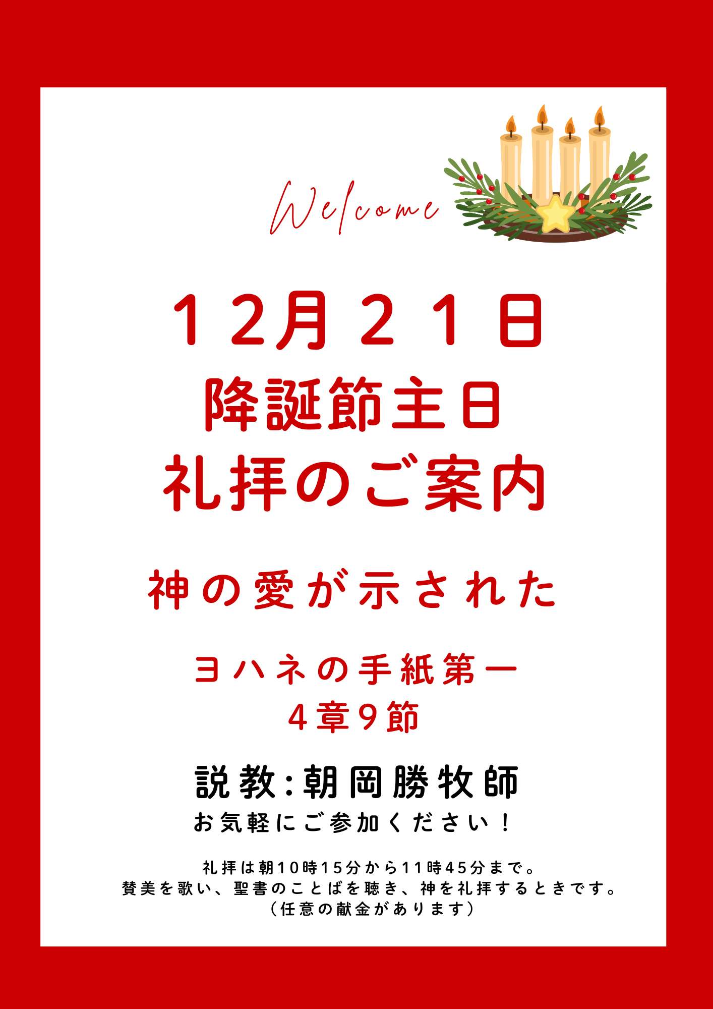 2025年12月21日 降誕節記念主日礼拝のご案内