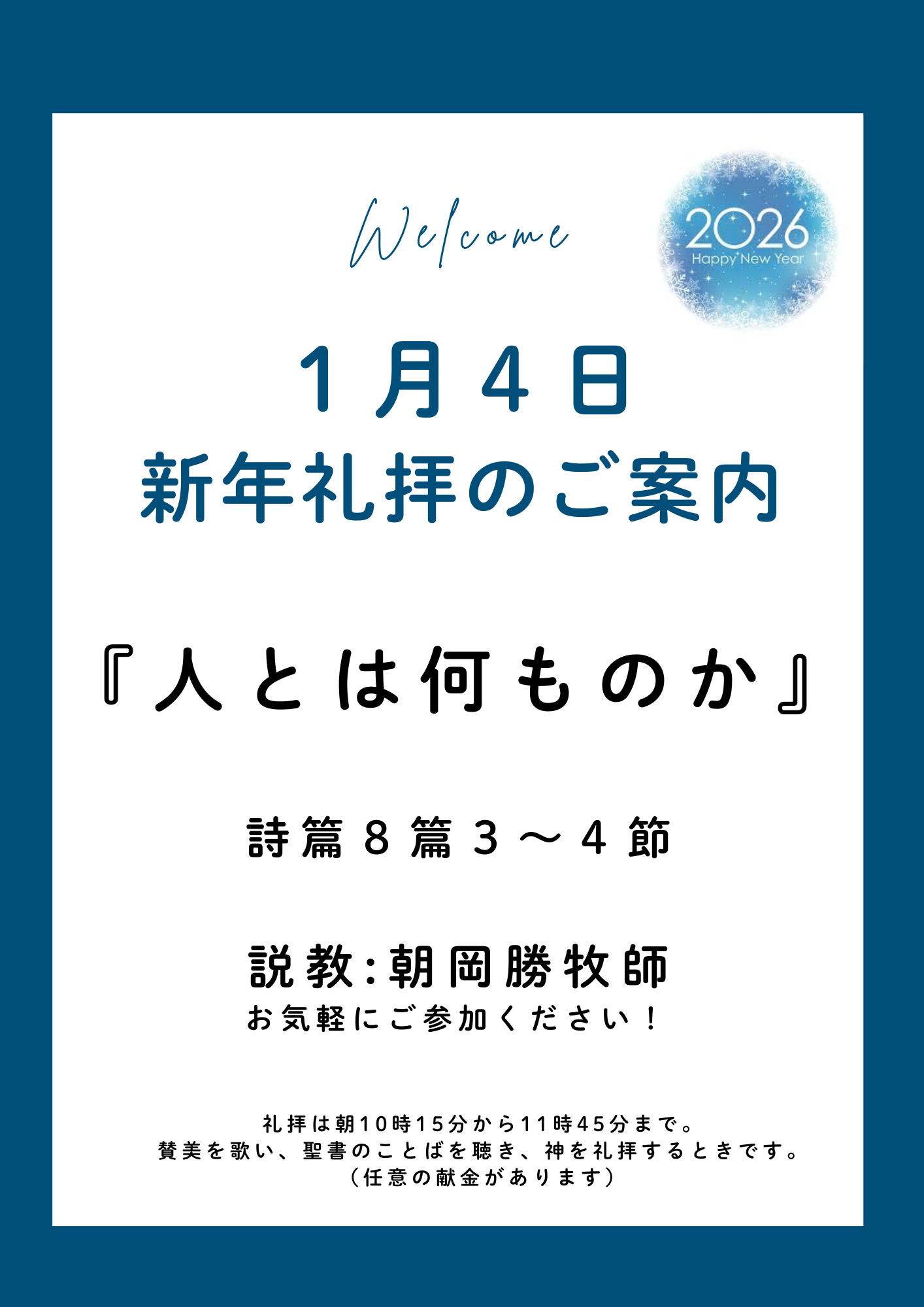 2026年1月4日 新年礼拝「人とは何ものか」詩篇8篇3~4節