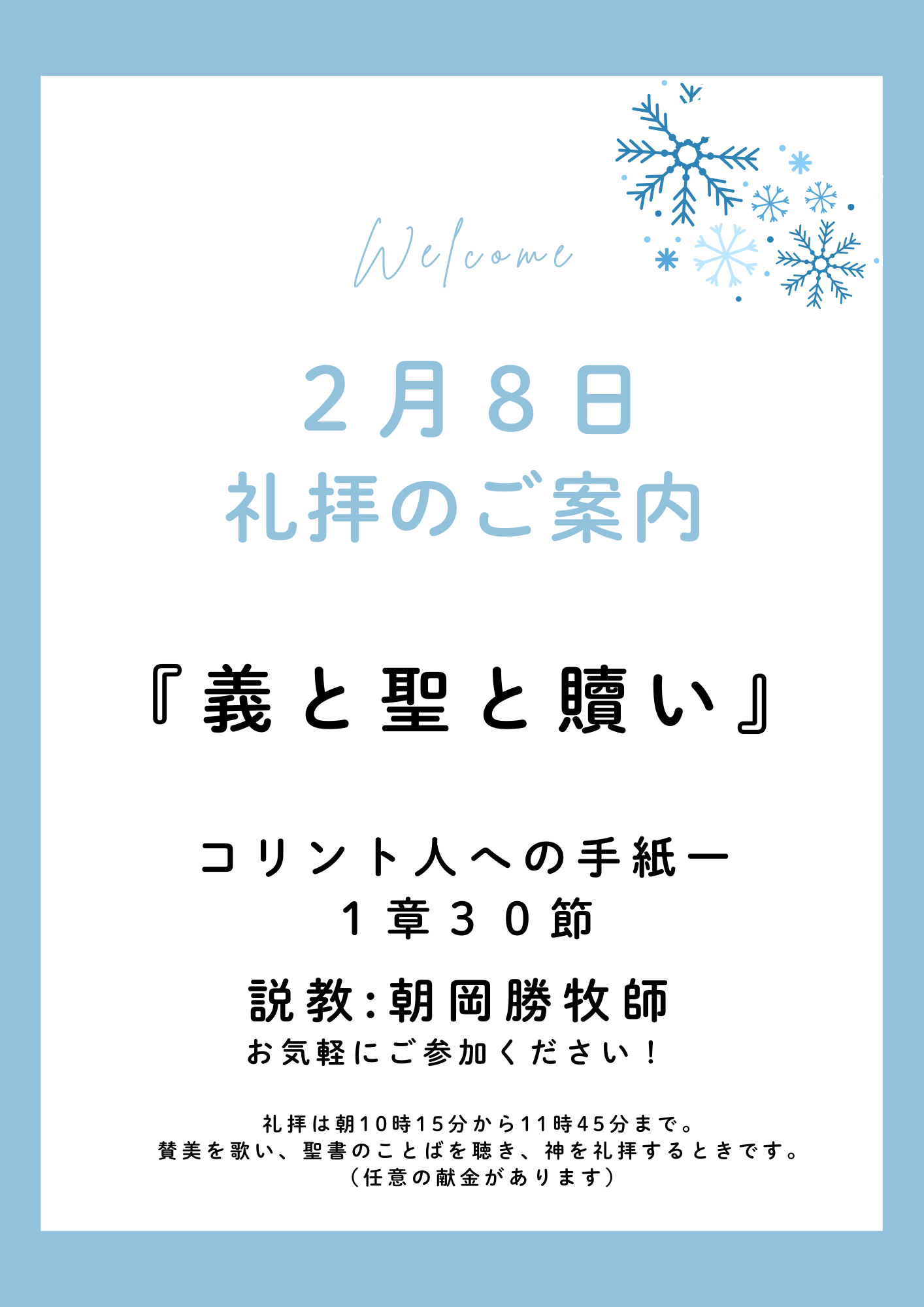 ホーム お知らせ 2026年2月8日 主日礼拝のご案内