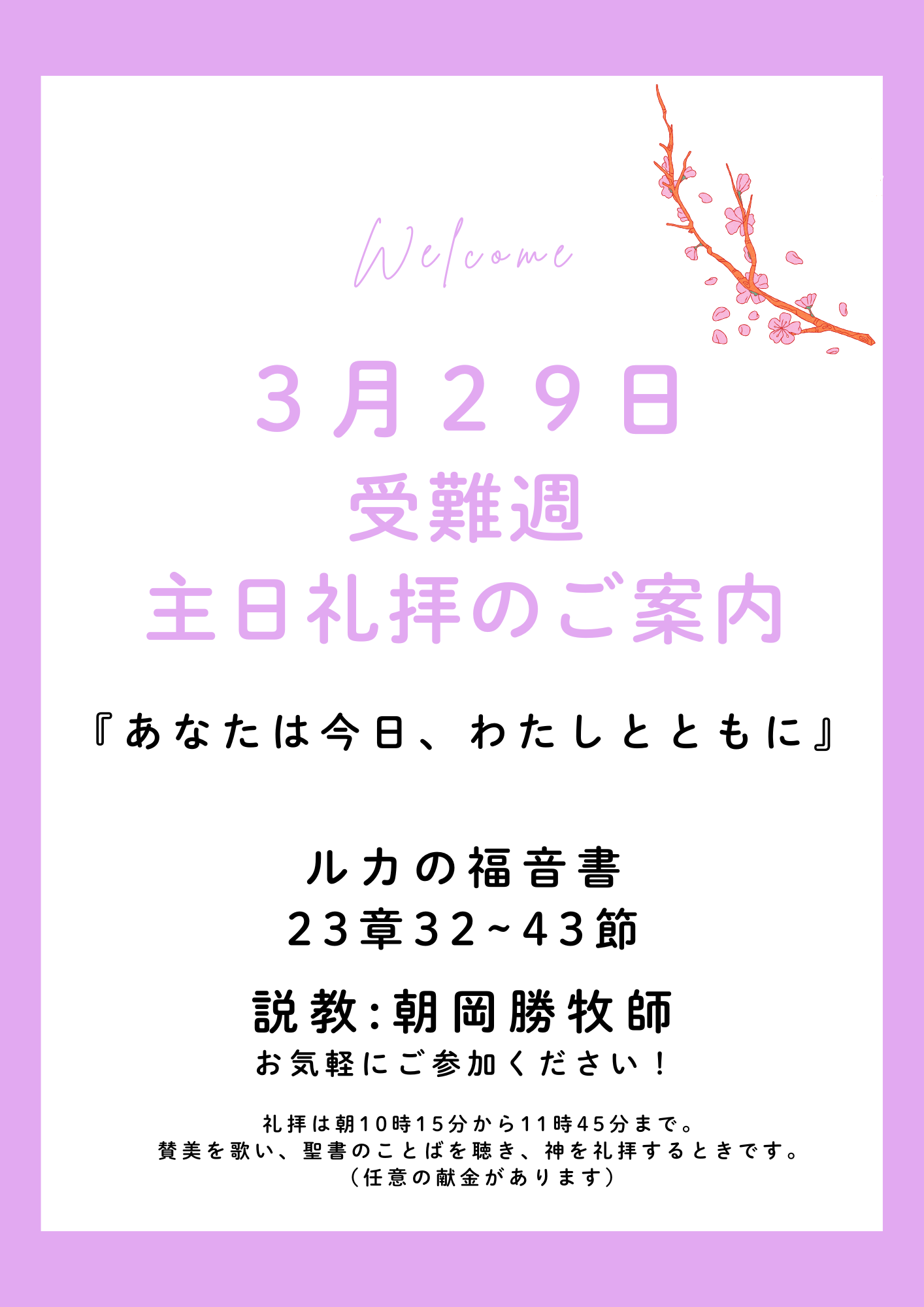 2026年3月29日 受難週主日礼拝のご案内