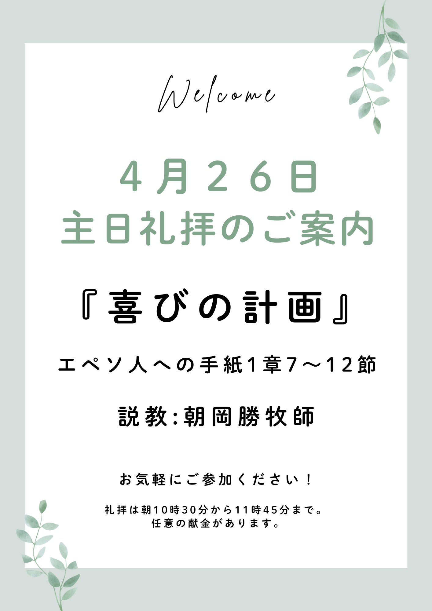 ホーム お知らせ 2026年4月26日 主日礼拝のご案内